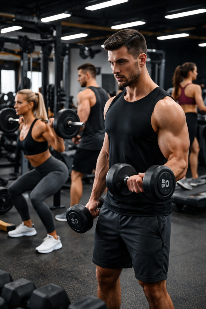 a modern fitness center equipped with advanced machines and professional trainers to help you achieve your fitness goals. 💪
